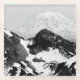 Fotografía en blanco y negro del monte Rainier con una cordillera accidentada en primer plano. Derechos reservados ©2023 Kimberly J Tilley. zazzle.com/store/developingnature