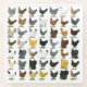 ¡Cuarenta y nueve gallinas en una variedad de razas y de colores parecen rápidas en todo del camisetas y de los posters a las tarjetas y a los delantales!
