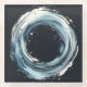 abstract riing, watercolor style, free hand pattern, beverage coaster, blue greyish tones, black background,