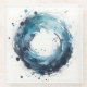 abstract ring in watercolor style, wheel spot, dark blue and teal color tones, beverage coaster, free hand pattern,