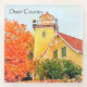 Un diseño vivo de la acuarela que representa el faro escénico del pen¢asco de Eagle en el condado de Door, Wisconsin, con el faro sobre el pen¢asco rodeado por las hojas de otoño rojas y anaranjadas brillantes que crean un recuerdo del recuerdo del viaje. © Elizabeth Meyer 2016