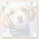 Posavasos De Vidrio Adorable Cachorro Fluffy con Azulejos de Bow Azul