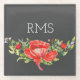 La elegante montaña rusa de cristal presenta un ramo de amapola rojo sobre fondo gris de carbón vegetal con monograma de personalizable o nombre de letra moderna