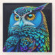 búho azul, verde azulado y turquesa con ojos amarillos se genera arte.