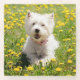 Esta linda foto de Getty Images muestra al perro Westie disfrutando de la primavera en un campo de dientes de león.
