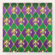 joyas, fondo del Mardi Gras de rhombus violeta y verde, lirios dorados decorados.