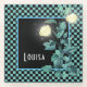 El diseño es dramático y elegante y cuenta con un fondo de tablero de ajedrez negro y acuático, un luminoso ramo de flores de rosa blanco y un nombre de personalizable.