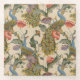 El arte es un patrón detallado con pavos reales con plumas de cola de colores vivos, que exhiben tonos azules, verdes y dorados. Alrededor de los pavos reales hay grandes flores vívidas, entre ellas flores rojas y rosas, mezcladas con follaje verde. El diseño se repite a la perfección, creando un tapiz vibrante y decorativo que hace hincapié en los motivos naturales y en los detalles complejos. El patrón fue creado en 1896, a partir del archivo Smithsonian.