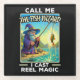 Esta imagen caprichosa muestra un mago vestido con una bata y un gorra púrpura, parado junto a un río o lago, sosteniendo una barra de pesca con un pez en la línea. El mago tiene una larga barba blanca que le da un toque místico, mientras que el fondo escénico muestra montañas y un cielo luminoso, lo que realza el ambiente encantador. El texto "THE FISH WIZARD" en la parte superior añade un toque lúdico a esta escena imaginativa, mezclando elementos de magia y actividad cotidiana en una imagen encantadora.