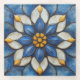 Posavasos De Vidrio Azulejo floral Blanco azul y amarillo