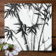 El bambú es un pincel de estilo tradicional chino libre (Xie Yi) con tinta sobre papel de arroz. El bambú ha sido un tema importante y significativo para la pintura durante muchos periodos de la historia china. Los chinos a menudo comparan el bambú con el caballero por su carácter único de no ser ruin ni arrogante. Además, la pintura de bambú es simbólica de la autofacción, la integridad y la seguridad. Para el bambú alto y recto y sus articulaciones, la gente también presenta pintura de bambú para expresar buenos deseos de ser ascendido a una posición más alta o rango sucesivamente. El representante de la simbólica pintura de flores chinas es "Cuatro Caballeros" y "Tres Amigos del Invierno". La flor de ciruelas, la orquídea, el bambú y el crisantemo se conocían como los Cuatro Caballeros. Sus rasgos comunes son la nobleza, la modestia y la integridad. Y como los Tres Amigos del Invierno, el pino, el bambú y la flor de ciruelo se asocian a menudo con un hombre de gran virtud de otro nivel Dentro del feng shui , el bambú simboliza la tristeza, la modestia y la promoción sucesiva. La técnica XieYi, también llamada "Estilo Libre", está pintada de la mano y el diseño de la imagen está sujeto a pocas restricciones. Xie significa escribir y Yi el significado. Un famoso maestro de la pintura china, dijo que Xieyi indicó el hecho de dibujar el espíritu de los seres. Painting Xieyi usa muchas técnicas de caligrafía que privilegian la espontaneidad de la línea. Así, se han colocado cuadros de estilo libre muy rápidamente. En el estilo de caligrafía, la imagen no debería ser pintada, sino escrita.