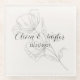 These elegant wedding glass coasters feature a frosted-look surface printed with a delicate sketched floral illustration and your names and date in romantic script, creating a sophisticated keepsake that protects tabletops while beautifully coordinating with minimalist décor.