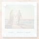 Unicas y divertidas posavasos de boda que imitan la apariencia de una foto instantánea retro con sus nombres y fecha en una tipografía manuscrita. La imagen tiene un filtro sobre ella para darle un aspecto envejecido (el filtro se puede cambiar o eliminar haciendo clic en el botón personalizar). Este diseño fresco y moderno es perfecto para la pareja minimalista que tiene una boda informal. Haz esto para ti o regala como un favor de boda único a tus invitados.