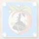 Esta montaña rusa de bebida de vidrio tiene una imagen vintage de un melocotón con hojas verdes y una silueta negra de una dama del sur de bonito sosteniendo una sombrilla con el texto Georgia sobre un fondo azul profundo.