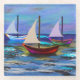 Posavasos De Vidrio Botes con fondo de mar y almohada de lanzamiento