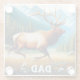 Una majestuosa alce de toro trota a través de un prado con montañas y pinos en el fondo, DAD en primer plano. Perfecto para el cumpleaños de papá o el día del padre