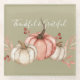 trío de bonito de calabazas acuarelas sobre fondo verde sabio con personalizable "Agradecido y agradecido" texto blanco en letra de escritura moderna