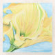 Esta pintada original de acrílico de Calla Lily presenta colores vivos amarillos, verduras de primavera, toques de rosa caliente y naranja de mandarina con un fondo azul cielo. Relájese en su mesa baja con una tarima que le aporta un ambiente alegre a su espacio vital con un arte alegre y alegre con Calla Lilies amarillo y cielo azul primaveral.