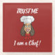 Cabeza del chef con gorra, pañuelo rojo y texto personalizado.