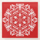 Esta mandala blanca se sienta sobre un fondo rojo brillante. El color es enérgico y cálido. Parte de la colección Erghenn Mandala.