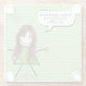 Un chica con una taza de café verde, el pelo, el collar de perlas y una cita sobre el fondo de un punto de polka. La cita es editable.