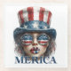 Celebremos el 4 de julio con estilo audaz con este glamoroso diseño patriótico. Con una mujer estilizada que usa gafas de sol rojas, blancas y azules, un sombrero top de bandera y texto de "Merica", es la impresión perfecta para las vibraciones del Día de la Independencia y el orgullo estadounidense.