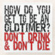¿Cómo llegas a ser un viejo cronómetro? ¡No bebas y no mueras! Un viejo chiste o lema de recuperación de 12 pasos. Doce pasos Oldtimers y mi patrocinador dicen esto todo el tiempo. Diseñado por Henry Nelson de Wichita Kansas