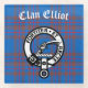 Diseño elegante con insignia de escudo del Clan Elliot escocés y texto de personalizable sobre fondo tartán