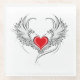 Corazón rojo pintado de forma artística con alas de ángel gris, decorado con un contorno suave negro.
