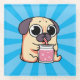 Muy lindo Pug con una bebida