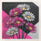 Colourful and cheerful Pink and White Daisy design on a Pink and Black Background Glass Coasters.