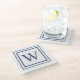 Posavasos De Vidrio Deep Navy And White Square Border Monogram