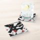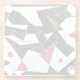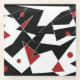 Varias formas geométricas de color blanco y rojo se reparten en un fondo negro, creando un contraste marcado. Algunas formas están interconectadas con líneas blancas finas y los puntos rojos agregan un toque de color a la composición.