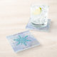 Modernos copos de nieve azules con diamantes blancos sobre fondo de hielo azul-blanco