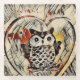 Salir de la multitud con este dibujo de búho en un marco con forma de corazón.