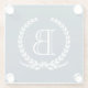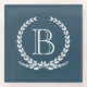 Diseño monograma con decoración de plumas de laurel sobre fondo azul