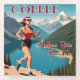 Corres por las altas montañas y haces carreras ultra corriendo solamente por el café y el café. Este gran diseño muestra un corredor en las montañas al estilo de un poster de viajes retro vintage.