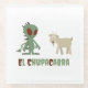 Gracioso Chupacabra y asustado mirando las tarimas de vidrio de cabra.