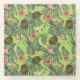 Posavasos De Vidrio Esbozo de frutas tropicales sobre el patrón verde