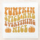 Este delicioso diseño de otoño captura la esencia de la temporada con la frase "especias de calabaza y todo lo bueno" presentada en un audaz tipo de letra de inspiración retro. El texto está dispuesto en un estilo alegre y ondulado que le da al diseño un ambiente dinámico y dinámico. Cada palabra está llena de cálidos tonos otoñales, que incluyen tonos naranjas, amarillos y marrones, que evocan el ambiente acogedor y acogedor del otoño. El diseño está adornado con encantadores ilustraciones de calabazas y una sola hoja de otoño, añadiendo un toque de estética.