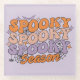 Este vibrante y juguetón diseño de Halloween celebra la espeluznante temporada con la repetida frase "Temporada de fantasía, fantasía, fantasía" en letra audaz inspirada en la retro. Las palabras "Spooky" se apilan en llamativos tonos de naranja, melocotón y morado, creando un efecto visual colorido y dinámico. La palabra "Temporada" está escrita en un guión que fluye en la parte inferior, vinculando el diseño con un toque de elegancia. Alrededor del texto hay encantadores elementos de Halloween como telarañas, murciélagos, estrellas y arañas diminutas, que agregan una atmósfera festiva y espeluznante. El conjunto está ligeramente moteado, lo que le confiere un aspecto vintage y gastado que le confiere un encanto especial.