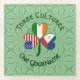 Shamrock diseñado para celebrar festividades filipinas, feriados irlandeses, como el Día de San Patricio, y festividades de EEUU, como el Día de la Independencia o el 4 de julio. El shamrock tiene una bandera diferente en cada hoja. Una para Filipinas, otra para Irlanda y otra para los Estados Unidos de América. Las palabras de arriba dicen TRES CULTURAS. Las siguientes palabras son ONE YOURNAME. Agregue su nombre en el lugar adecuado para una apariencia personalizada. Para un regalo personalizado, simplemente agregue el nombre de otra persona. Las palabras se muestran en verde oscuro, estilo celta, letras circulares. El fondo son cuadrados verdes y claros.