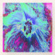 Posavasos De Vidrio Flor de hibiscus verde y azul psicodélico retro