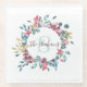 Posavasos de vidrio floral con iniciales en acuare