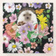 Un lindo erizo sentado entre coloridas flores de verano sobre un fondo negro