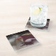 Un hermoso paisaje con texturas únicas que muestran un faro al borde del acantilado y un océano nocturno nebuloso con una luna en alza y un cielo estrellado en tonos rojos, rosas, dorados, plateados y azules.
