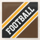 Este diseño deportivo presenta texto atlético de FOOTBALL dentro de una banda de carreras ancha realzada en diagonal en blanco, negro y amarillo dorado contra fondo marrón negrita. Los colores y el texto de este diseño se pueden personalizar.