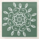 Esta mandala blanca se sienta sobre un fondo verde forestal. Los colores son tranquilos. Parte de la colección Avanenn Mandala.