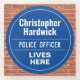 Un regalo divertido de estilo conmemorativo de la placa de la pared en forma de una montaña rusa de vidrio para un oficial de policía. Placa azul y blanca. Edite el diseño para cambiar la redacción de manera que se ajuste al destinatario del regalo.