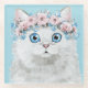 Características del este diseño un gatito blanco bonito que lleva un halo rosado y azul de la flor.